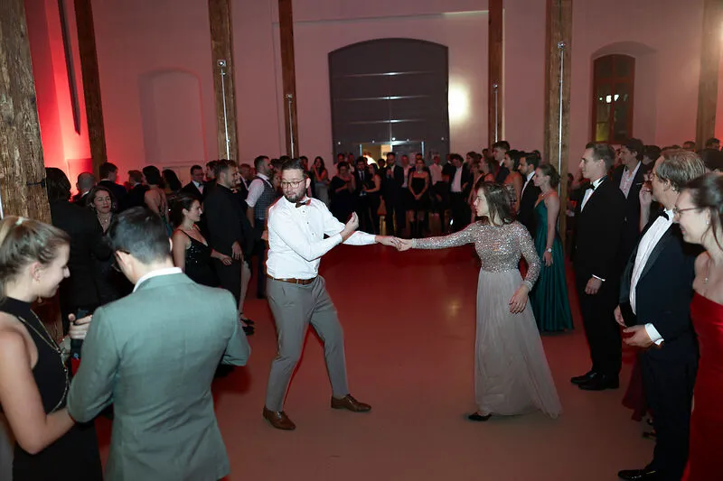 The dance floor was opened with the traditional opening dance performed by seven student couples from almost all bachelor's and master's programs, choreographed by Iva Eberle from the Liechtenstein Dance Club. This was followed by a passionate dance performance by the Tango Liechtenstein association. At midnight sharp, the guests gathered for the traditional highlight, the midnight quadrille to Johann Strauss' “Die Fledermaus,” during which everyone present was invited to dance together.